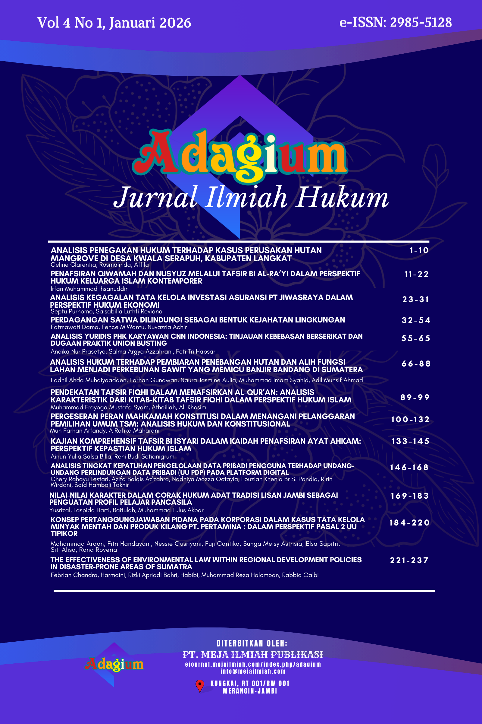 Adagium: Jurnal Ilmiah Hukum